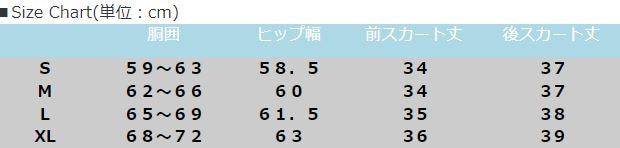 | 胴囲 | ヒップ幅 | 前スカート丈 | 後スカート丈 |