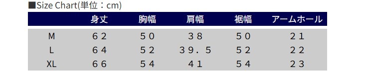 ■Size Chart(単位:cm)